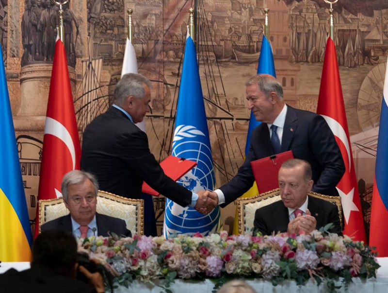 НҮБ-ын дэмжлэгтэй, Туркийн зуучлалтайгаар ОХУ болон Украин улс хар тэнгисийн боомтуудад гацсан үр тариаг аюулгүй тээвэрлэх тохиролцоонд хүрч, гэрээнд гарын үсэг зурлаа. Ингэснээр, Украйны талаас үр тариа экспортлох боломжтой болж, Оросын арми тээврийн хөлөг онгоцнуудыг зорчих боломжоор хангах үүрэг хүлээж байгаа юм.