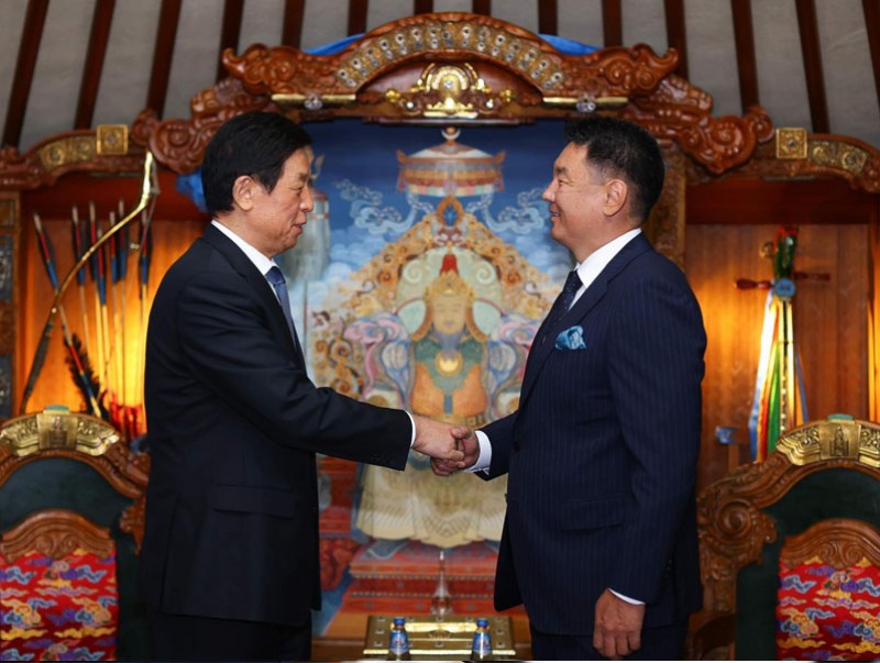 БНХАУ-ын БХАТИХ-ын Байнгын хорооны дарга Ли Жаньшу БНХАУ-ын дарга Ши Жиньпиний мэндчилгээг Ерөнхийлөгч У.Хүрэлсүхэд уламжлав.