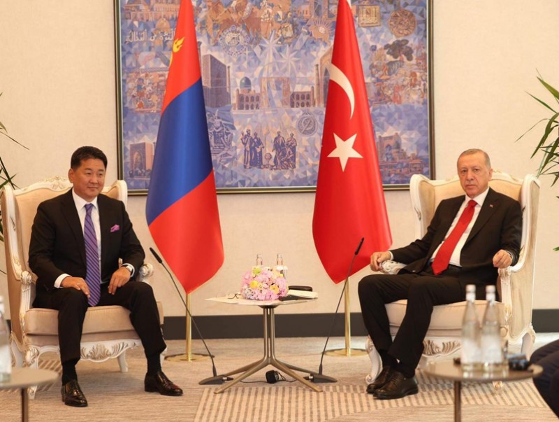 Монгол Улсын Ерөнхийлөгч Ухнаагийн Хүрэлсүх Бүгд Найрамдах Узбекистан Улсын Самарканд хотноо Шанхайн хамтын ажиллагааны байгууллага (ШХАБ)-ын гишүүн орнуудын Төрийн тэргүүн нарын зөвлөлийн өргөтгөсөн хуралдаанд оролцох үеэрээ Бүгд Найрамдах Турк Улсын Ерөнхийлөгч Рэжэп Тайип Эрдогантай уулзаж, хоёр талын болон олон улсын харилцааны зарим асуудлаар санал солилцов.