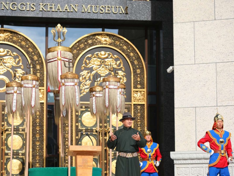 Ерөөл бэлгэ, өлзий учрал тэгш дүүрэн бүрдсэн энэ сайхан өдөр Эзэн Богд Чингис хаан болон түүний залгамжлагчдын түүхэн гавьяа, үйл хэргийг алдаршуулж, суу алдрыг мөнхжүүлэх зорилгоор, даяар Монголын ариун гал голомт, улсын нийслэл Улаанбаатар хотноо “Чингис хаан” хаад язгууртны музейг нээж, далай их өвөг дээдэстээ гүн хүндэтгэл үзүүлэхээр Та бид хуран цуглаад байна.