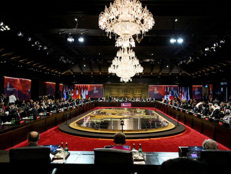 “Дайн хямралыг эв зүйгээр шийдвэрлэх, ингэж шийдвэрлэхийн төлөө хүчин чармайлт гаргах, мөн дипломатын болон яриа хэлэлцээний арга хэлбэрүүд амин чухал ач холбогдолтойг” Тунхаг бичигт дурдсан байна. Аж үйлдвэр өндөр хөгжсөн 20-ийн бүлгийн орнуудын удирдагчид бас, Уур амьсгалын өөрчлөлтийн эсрэг тэмцэх үүрэг хариуцлага өөрсөд нь оноогдож байгааг мэдэгдэж, дэлхийн дулаарлын хурдцыг сааруулах хүчин чармайлтаа цаашид үргэлжлүүлэхээ батлан илэрхийллээ. Дэлхийд эдийн засгаараа тэргүүлэгч 20 орны бүлгийн 17 дахь удаагийн дээд хэмжээний уулзалт 2 өдөр үргэлжилж өнөөдөр ажлаа өндөрлөж байна. Энэ уулзалтад ОХУ-ын Ерөнхийлөгч Владимир Путин оролцоогүй, түүний оронд Гадаад хэргийн сайд Сергей Лавров оролцсон юм.