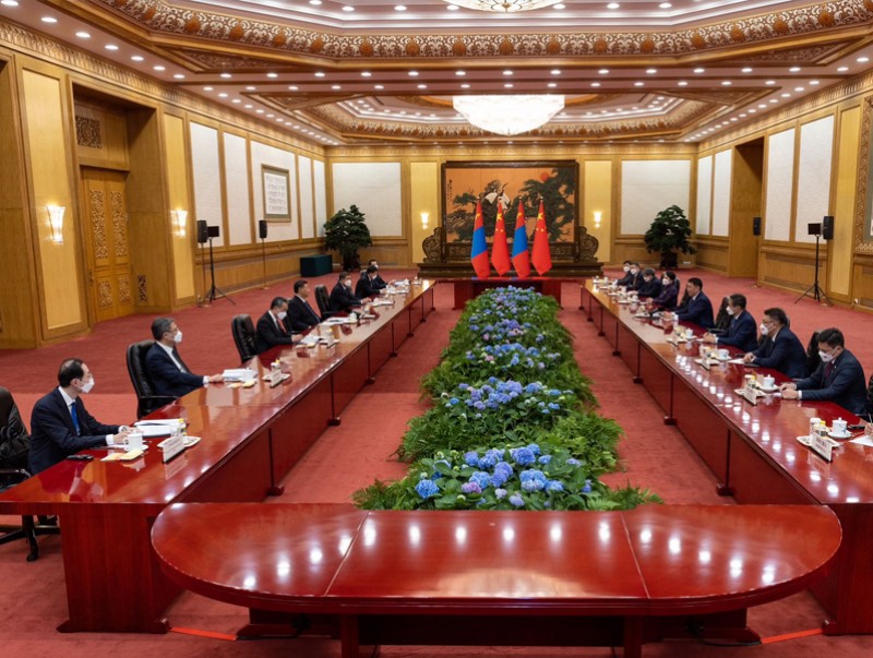 Монгол Улсын Ерөнхийлөгч Ухнаагийн Хүрэлсүх, Бүгд Найрамдах Хятад Ард Улсын дарга Ши Жиньпин нар 2022 оны 11 дүгээр сарын 28-ны өдөр Хятадын Ардын Их Хурлын ордонд албан ёсны хэлэлцээ хийв.