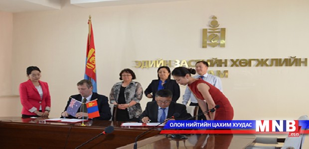 Австрали улсын Засгийн газраас Монгол Улсын Засгийн газарт үзүүлэх буцалтгүй тусламжийн хүрээнд хэрэгжүүлэх “Монгол дахь Австралийн тэтгэлэгт хөтөлбөр”-ийн дэд гэрээнд өнгөрсөн баасан гарагт Эдийн засгийн хөгжлийн яамны Төрийн нарийн бичгийн дарга Б.Шинэбаатар, Австрали улсаас БНХАУ-д суугаа ЭСЯ-ны Консул Жефф Бовен нар гарын үсэг зурлаа.