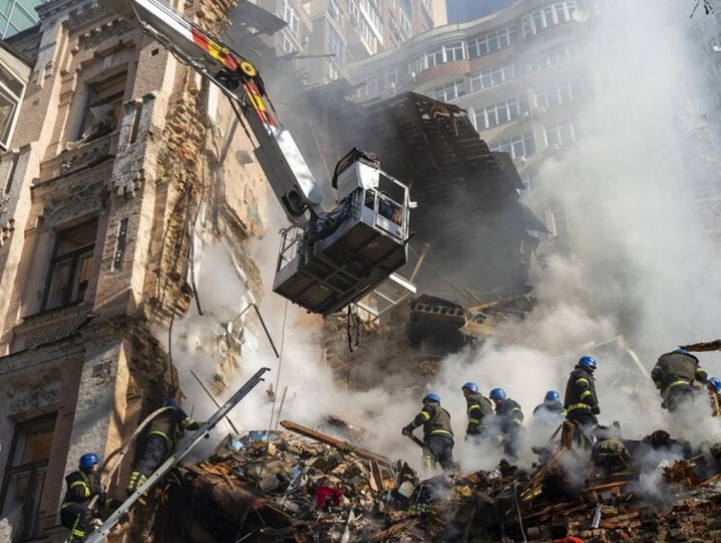 Мөн тус хотын 40 хувь нь гэрэл цахилгаангүй болсон байна. Үүнээс гадна, пүрэв гарагийн өглөө Оросын пуужингийн довтолгооны улмаас Киевийн зүүн өмнөд хэсэгт байшингууд нурж, их хэмжээний хохирол амссан байна.