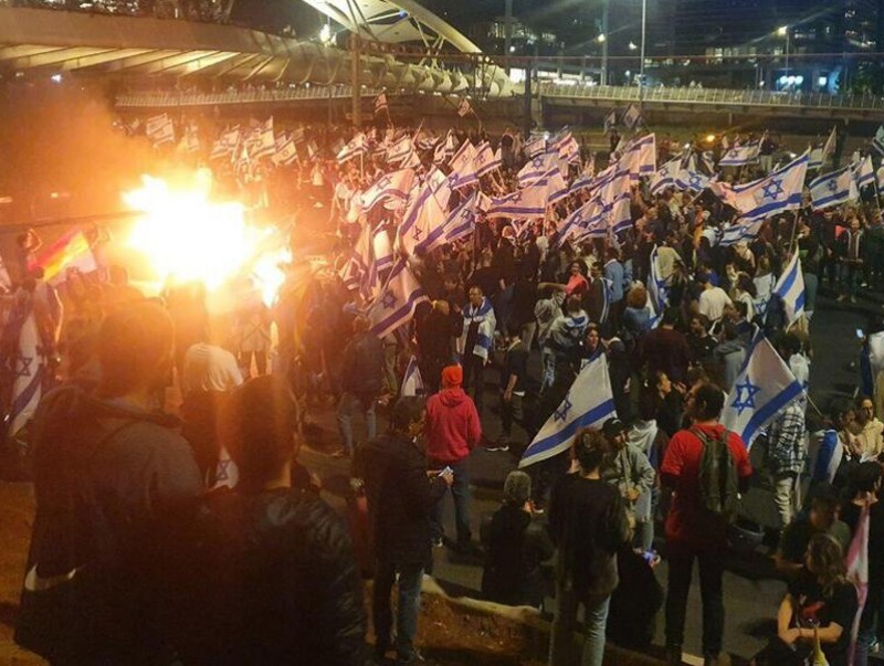 Тель-Авив дахь жагсагчид гол хурдны замуудыг хааж, томоохон хэмжээний гал түймэр гарч цагдаа хүчнийхэн Иерусалим дахь Нетаньяхугийн хувийн байшингийн гадаа цугларсан эсэргүүцэгчидтэй мөргөлдөөн үүсгэжээ.
