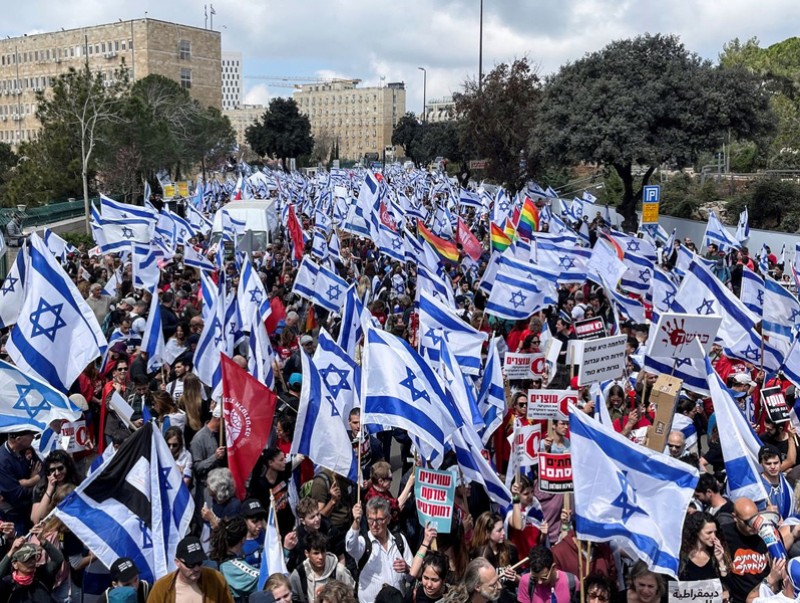 Израилд олон зуун жагсагчид Лхагва гарагийн шөнө Ерөнхий сайд Биньямин Нетаньяхугийн засгийн газрын шүүх засаглалыг шинэчлэх төлөвлөгөөний эсрэг байгаагаа илэрхийлж, Тел Авив болон Иерусалимын гудамжинд жагсаал цуглаанаа үргэлжлүүллээ. Дотоодын хямралын улмаас энэ долоо хоногийн эхээр энэ төлөвлөгөөг хойшлуулахаар зарласан ч иргэдийн хөдөлгөөн үргэлжилсээр байна.