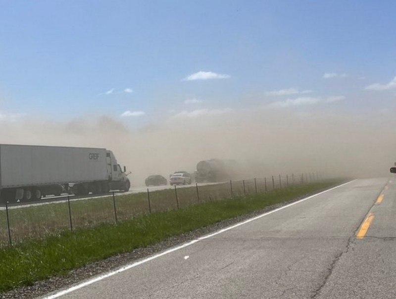 Ослын гол шалтгаан нь фермерийн талбайн хөрс хүчтэй салхинд хийсэж ирснээс болоод үзэгдэх орчин хязгаарлагдсантай холбоотой гэж үзэж байна. Өдгөө хурдны замыг хаажээ.