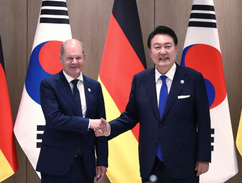 ХБНГУ-ын канцлер Олаф Шольц болон БНСУ-ын ерөнхийлөгч Юн Сок Ёль нар Сөүл хотноо уулзаж хэлэлцлээ. Энэ үеэр аж үйлдвэрийн нийлүүлэлтийн тогтвортой сүлжээ бий болгох, Умард Солонгосын цөмийн зэвсэглэлийг тойрсон тулгамдаж буй сорилтуудыг шийдвэрлэхэд хамтын ажиллагаагаа гүнзгийрүүлэхээ мэдэгдлээ.