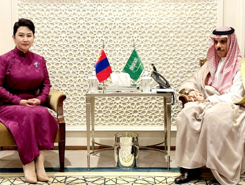 Гадаад харилцааны сайд Б.Батцэцэг Саудын Арабын Хаант Улсад хийж буй албан ёсны айлчлалынхаа хүрээнд Саудын Арабын Хаант Улсын Гадаад хэргийн сайд, Эрхэм дээд Ханхүү Файсал бин Фархан Аль-Саудтай тавдугаар сарын 25-ны өдөр уулзав.