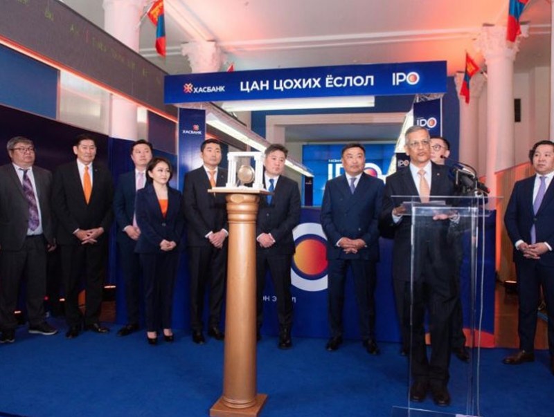 “Хасбанк” ХХК-ийн нээлттэй хүрээнд санал болгож буй хувьцааны анхдагч зах зээлийн арилжааг нээх цан цохих ёслол өнөөдөр /2023-05-29/ Монголын хөрөнгийн биржийн арилжааны танхимд зохион байгуулагдлаа.
