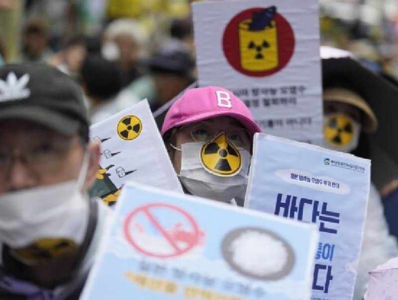 Өмнөд Солонгос улсад, хүчтэй хар салхины дараа ч бороо үргэлжлэн орсоор байна. Гэвч жагсагчид гадаах байдлыг үл ажран, борооны цув шүхэр барьж, эсэргүүцлийн хөдөлгөөнд оролцож байна. Зарим жагсагчид далайн усыг бохирдуулахыг эсэргүүцсэн уриа лоозон барьж нийслэл Сөүл хотын төв гудамжаар тайван жагсжээ. Өнгөрсөн 7-р сард олон улсын атомын энергийн агентлаг сүүлийн 2 жилийн туршид Фүкүшима Дайчи атомын цахилгаан станцаас цэвэршүүлсэн усыг далайд цутгах тухай Япон улсын төлөвлөгөөнд шалгалт явуулж дүгнэлтээ танилцуулсан.НҮБ-ын цөмийн байгууллагаас гаргасан тайланд уг станцаас шингэн боловсруулах дэвшилтэт систем ашиглаж шүүсэн 1,3 сая тонн цэвэршүүлсэн усыг номхон далайд цутгах нь олон улсын аюулгүй байдлын стандартад нийцэж байгаа тул аюулгүй гэж дүгнэсэн байна.