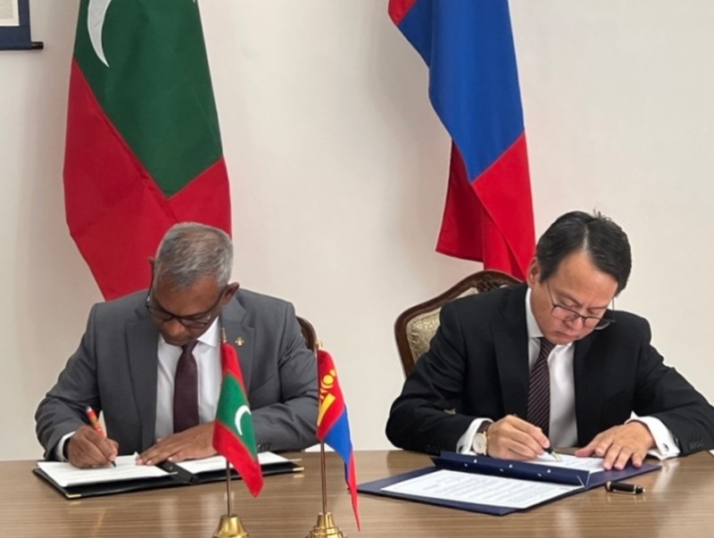 Дели хотноо энэ оны наймдугаар сарын 17-ны өдөр “Дипломат, албан болон энгийн паспорт эзэмшигчдийг визийн шаардлагаас харилцан чөлөөлөх тухай Монгол Улсын Засгийн газар, Бүгд Найрамдах Мальдив Улсын Засгийн газар хоорондын хэлэлцээр”-т Монгол Улсаас Бүгд Найрамдах Энэтхэг Улсад суугаа Онц бөгөөд Бүрэн эрхт Элчин сайд Д.Ганболд, Бүгд Найрамдах Мальдив Улсаас Бүгд Найрамдах Энэтхэг Улсад суугаа Онц бөгөөд Бүрэн эрхт Элчин сайд Ибрахим Шахийб нар гарын үсэг зурав.