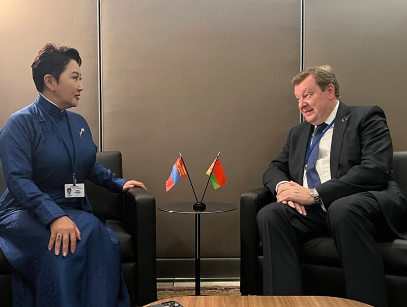 Монгол Улсын Гадаад харилцааны сайд Б.Батцэцэг НҮБ-ын Ерөнхий Ассамблейн 78 дугаар чуулганы Ерөнхий санал шүүмжлэлд оролцох үеэр Беларус Улсын Гадаад хэргийн сайд Сергей Алейниктэй НҮБ-ын Төв байранд уулзав.