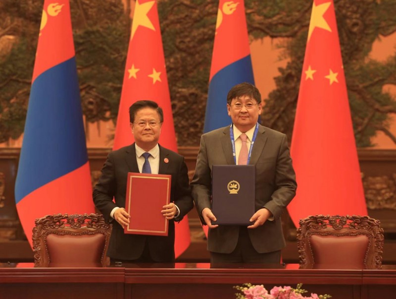 Монгол Улсын Ерөнхийлөгч Ухнаагийн Хүрэлсүх Бүгд Найрамдах Хятад Ард Улсад зохион байгуулагдаж буй “Бүс ба зам” олон улсын хамтын ажиллагааны дээд түвшний чуулга уулзалтад оролцох үеэр 2023 оны 10 дугаар сарын 19-ний өдөр хоёр улсын Төрийн тэргүүн нарыг байлцуулан БНХАУ-ын Ардын Их хурлын ордонд дараах баримт бичигт гарын үсэг зурав.
