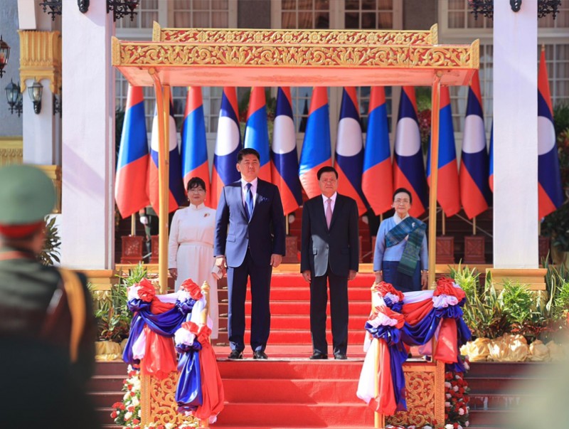Бүгд Найрамдах Ардчилсан Лаос Ард Улсад төрийн айлчлал хийж буй Монгол Улсын Ерөнхийлөгч Ухнаагийн Хүрэлсүх, гэргий Лувсандоржийн Болорцэцэг нарыг тус улсын Ерөнхийлөгч Тонглун Сисүлит гэргий Нали Сисүлитийн хамт 2023 оны 11 дүгээр сарын 06-ны өдөр Ерөнхийлөгчийн ордонд албан ёсоор угтлаа.