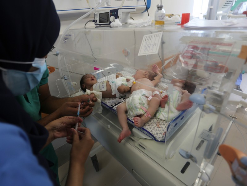 Өчигдөр шөнө Газа хот дахь Аль Шифа эмнэлгээс инкубаторт байсан дөнгөж төрсөн 31 нярайг өмнөд хил дээрх Рафах хотын амаржих газарт шилжүүлжээ. Эмч нарын хэлснээр нярай хүүхдүүд бүгд халдварт өвчинд өртөж, эрүүл мэнд нь хүнд байна гэдгийг Дэлхийн Эрүүл Мэндийн Байгууллагаас баталлаа. Тэднээс 11 нярайн биеийн байдал онц ноцтой нөхцөлд байна гэдгийг мөн тодруулж байна. Израилын дайралтын улмаас эмнэлгийн хангамж дуусаж, дөнгөж төрсөн нярай хүүхдүүдийг халдвараас сэргийлэх вакцин, эм тан хүрэлцээгүй байсан тул ийм нөхцөл байдалд хүрлээ гэж Дэлхийн Эрүүл Мэндийн байгууллага тодорхойлсон байна.