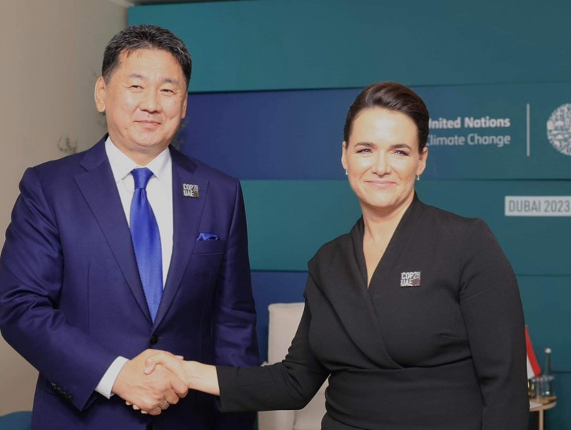 Арабын Нэгдсэн Эмират Улсын Дубай хотноо зохион байгуулагдаж буй Уур амьсгалын өөрчлөлтийн асуудлаарх дэлхийн удирдагчдын дээд түвшний уулзалтын үеэр Монгол Улсын Ерөнхийлөгч Ухнаагийн Хүрэлсүх Унгар Улсын Ерөнхийлөгч Каталин Новактай уулзаж, хоёр талын хамтын ажиллагаа, олон улсын зарим асуудлаар санал солилцов.