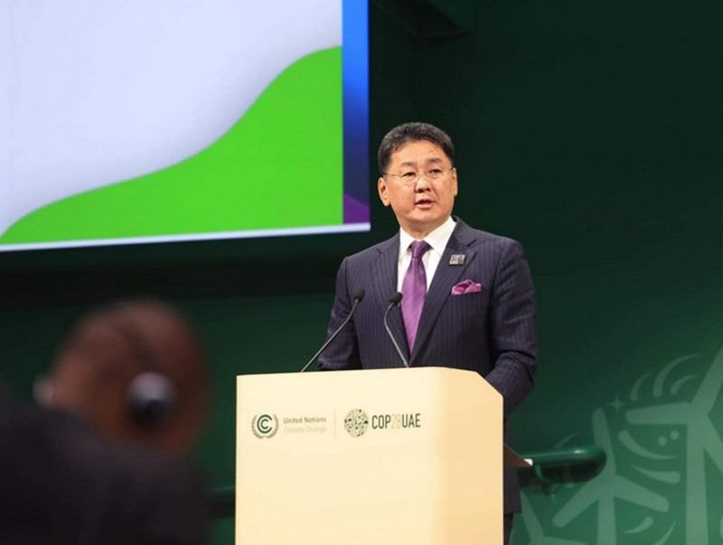 Арабын Нэгдсэн Эмират Улсын Дубай хотноо Уур амьсгалын өөрчлөлтийн асуудлаарх дэлхийн удирдагчдын дээд түвшний уулзалтад оролцож буй Монгол Улсын Ерөнхийлөгч Ухнаагийн Хүрэлсүх 2023 оны 12 дугаар сарын 02-ны өдөр “Далайд гарцгүй хөгжиж буй орнууд дахь уур амьсгалын өөрчлөлтийн өвөрмөц сорилт, бэрхшээлийг түншлэлийн замаар шийдвэрлэх нь” сэдэвт өндөр түвшний хуралдаанд оролцож үг хэллээ.