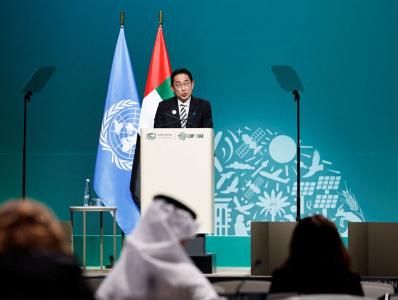 Уур амьсгалын өөрчлөлтийн тухай НҮБ-ын суурь конвенцын Талуудын 28 дугаар бага хурлын үеэр болж байгаа дээд түвшний уулзалтад дэлхийн 140 гаруй улсын төр засгийн тэргүүн нар оролцож, хүлэмжийн хий ялгаруулалтаа бууруулах үндэсний зорилт, төлөвлөгөөгөө танилцуулж байна. Тухайлбал Япон улс хүлэмжийн хийн ялгаруулалтыг бууруулах технологи суурилуулаагүй, нүүрсээр ажилладаг дулааны цахилгаан станц шинээр барихгүй, 2030 он гэхэд нүүрстөрөгчийн хий ялгаруулалтыг 46-аас 50 хувьд хүргэн бууруулах зорилт тавьж байгааг ерөнхий сайд Кишида танилцуулсан байна.