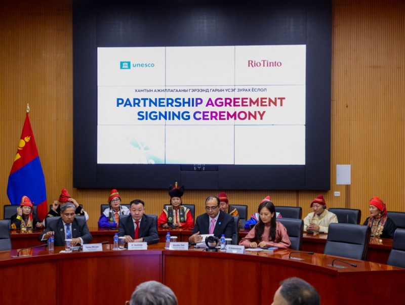 НҮБ-ын Боловсрол, шинжлэх ухаан, соёлын байгууллага /ЮНЕСКО/ болон Рио Тинто Монгол ХХК Монгол Улсын тогтвортой хөгжилд чиглэсэн санаачилгуудыг дэмжих урт хугацааны хамтын ажиллагааны Санамж бичигт гарын үсэг зурах ёслолын ажиллагаа 2023 оны 12 дугаар сарын 4-ний өдөр ГХЯ-нд болов.