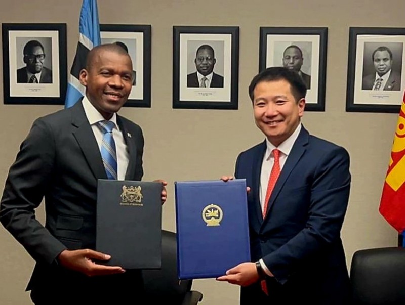 Монгол Улсын Гадаад харилцааны дэд сайд Г.Амартүвшин, Бүгд Найрамдах Ботсвана Улсын Гадаад хэргийн сайд Лемоганг Квапе нар дипломат харилцаа тогтоох тухай Хамтарсан албан мэдээнд Нью-Йорк хотноо 2023 оны 12 дугаар сарын 6-ны өдөр гарын үсэг зурав.