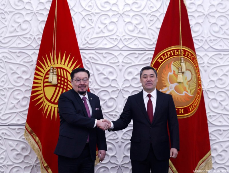 Монгол Улсын Их Хурлын дарга Г.Занданшатар Бүгд Найрамдах Киргиз Улсад хийж байгаа албан ёсны айлчлалынхаа үеэр буюу 2024 оны 02 дугаа сарын 28нд Бүгд Найрамдах Киргиз Улсын Ерөнхийлөгч С.Жапаровт бараалхлаа.