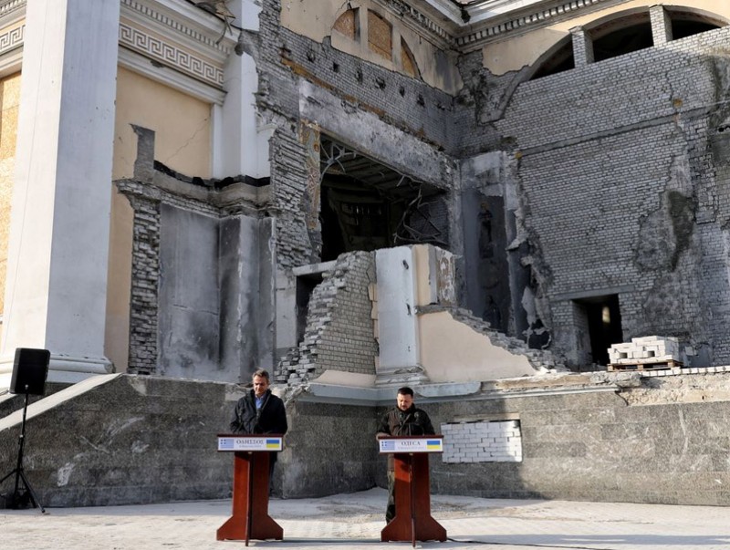 Украины Ерөнхийлч Володимир Зеленский Грекийн Ерөнхий сайд Кириакос Мицотакисийн хамт лхагва гарагт Одесс хотод айлчилж, нөхцөл байдалтай танилцаж байх үеэр Оросын пуужингийн цохилт ирж, том дэлбэрэлт үүсгэжээ.