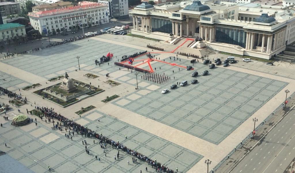 Харин дөнгөж сая Монгол Улсын Ерөнхийлөгч Ц.Элбэгдорж, тэргүүн хатагтай Х.Болормаа нар БНХАУ-ын Дарга Си Зиньпин гэргий Пөн Ли-Юань нарыг албан ёсоор Чингисийн талбайд угтаж авлаа.