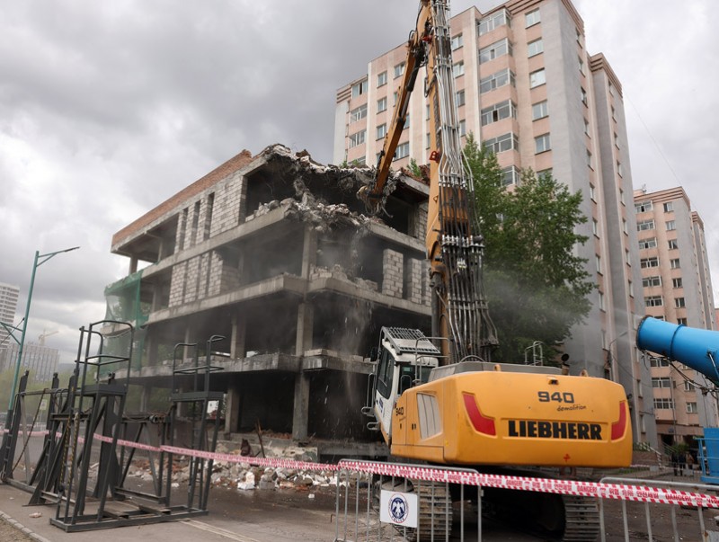 Сүхбаатар дүүргийн 7 дугаар хороо, Үндэсний шинэ номын сангийн дэргэд баригдаж буй барилгын каркасыг эзэмшигчтэй нь зөвшилцөн, буулгаж эхэллээ.