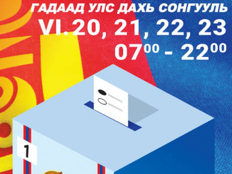 Гадаад улсад байгаа сонгогч та 2024 оны 6 дугаар сарын 20, 21, 22, 23-ны өдрүүдийн аль нэг өдөр нь саналаа өгч, сонгуульдаа идэвхтэй оролцоно уу гэж Монгол Улсын Сонгуулийн ерөнхий хорооноос мэдээллээ.
