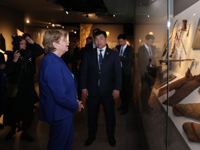 Монгол Улсын Ерөнхийлөгч Ухнаагийн Хүрэлсүхийн урилгаар Монгол Улсад албан ёсны айлчлал хийж байгаа Швейцарын Холбооны Улсын Ерөнхийлөгч Виола Амхерд “Чингис хаан” үндэсний музейд зочилж, нүүдэлчдийн анхны төрт улс Хүннүгээс эхлэн ХХ зууны эхэн хүртэлх хаад, монголын түүхийг өгүүлсэн үнэт үзмэрүүдийг үзэж сонирхлоо.