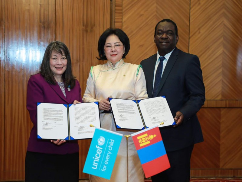Улаанбаатар хотноо болсон тунхаг бичигт нэгдэж, гарын үсэг зурах ёслолд НҮБ-ын Хүүхдийн Сангийн Зүүн Ази, Номхон далайн бүсийн захирал хатагтай Жүүн Күнүги, Монгол дахь Суурин төлөөлөгч Эваристе Коуасси-Комлан гэрчээр оролцож, талархан хүлээн авлаа.