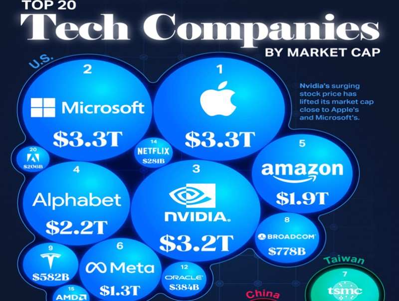 Тухайлбал, Тайвань гаралтай Америкт бүртгэлтэй чип үйлдвэрлэгч “Nvidia” өнгөрөгч зургаадугаар сард зах зээлийн үнэлгээгээрээ дэлхийн хамгийн том компани болсон.