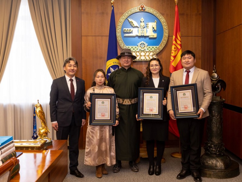 Монгол Улсын Ерөнхийлөгч Ухнаагийн Хүрэлсүх шилдэг залуу эрдэмтдэд нэрэмжит шагналаа хүртээж, баяр хүргэлээ.