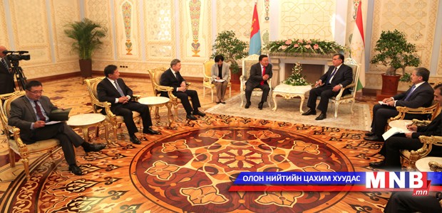 Монгол Улсын Ерөнхийлөгч Ц.Элбэгдоржийг Душанбе хотын “Дворец наций” ордонд хүрэлцэн ирмэгц Бүгд Найрамдах Тажикистан улсын Ерөнхийлөгч Эмомали Рахмон угтан авч уулзав. Тэд Шанхайн хамтын ажиллагааны байгууллагын үйл ажиллагаа өргөжин тэлж, үйл ажиллагаа нь эрчимжиж буйг тэмдэглэн ярилцжээ.