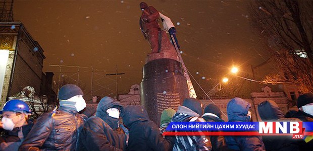 Украйнчуудын Оросын харьяалалд орохгүй гэх тэмцэл улам хүчээ авч эхэллээ. Үүний илэрхийлэл болгож өнгөрөгч амралтын өдөр Украйны Харьков хотын төв талбайд байрлах Лениний хөшөөг буулгасан байна. Энэ нь Украинд нурж буй Лениний гурав дахь хөшөө юм. Хөшөөг буулгах үеэр нэг хүн толгойдоо гэмтэл авчээ.