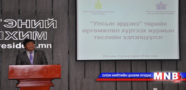 Монгол Улсын Ерөнхийлөгчийн санаачилсан “Улсын эрдэнэ” өргөмжлөл хүртээх журмын талаар өнөөдөр Ерөнхийлөгчийн дэргэдэх Иргэний танхимд хэлэлцүүлэг хийсэн. Хэлэлцүүлэгт ШУА, их, дээд сургуулийн эрдэмтэн судлаачид, доктор, профессорууд, иргэд, ардын авьяастнуудын төлөөлөл оролцож санал бодлоо солилцлоо.