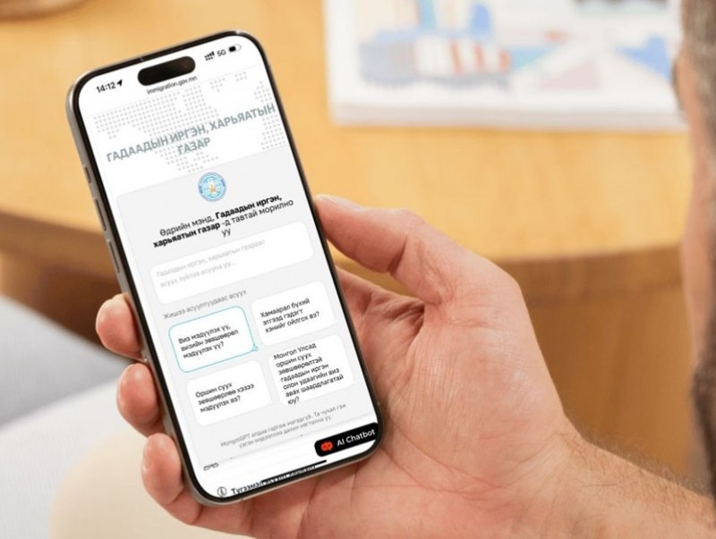 Энэ хүрээнд хиймэл оюун ухаанд суурилсан чатботыг цахим үйлчилгээний нэгдсэн (isf.mn) систем болон байгууллагын цахим сайт (immigration.gov.mn), цахим хуудаст холбож, үйл ажиллагаанд нэвтрүүллээ.