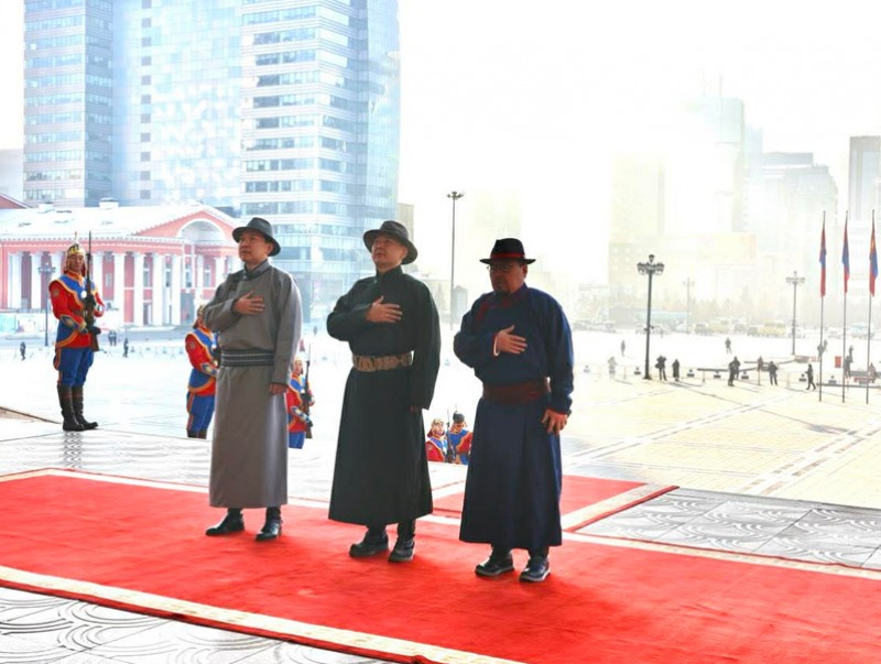 Эзэн Богд Чингис хааны мэндэлсний 863 жилийн ой, “Монгол бахархлын өдөр”-ийг тохиолдуулан Монгол Улсын Ерөнхийлөгч Ухнаагийн Хүрэлсүх, Улсын Их Хурлын дарга Ням-Осорын Учрал, Ерөнхий сайд Гомбожавын Занданшатар нар Эзэн Богд Чингис хааны хөшөөнд хүндэтгэл үзүүллээ.