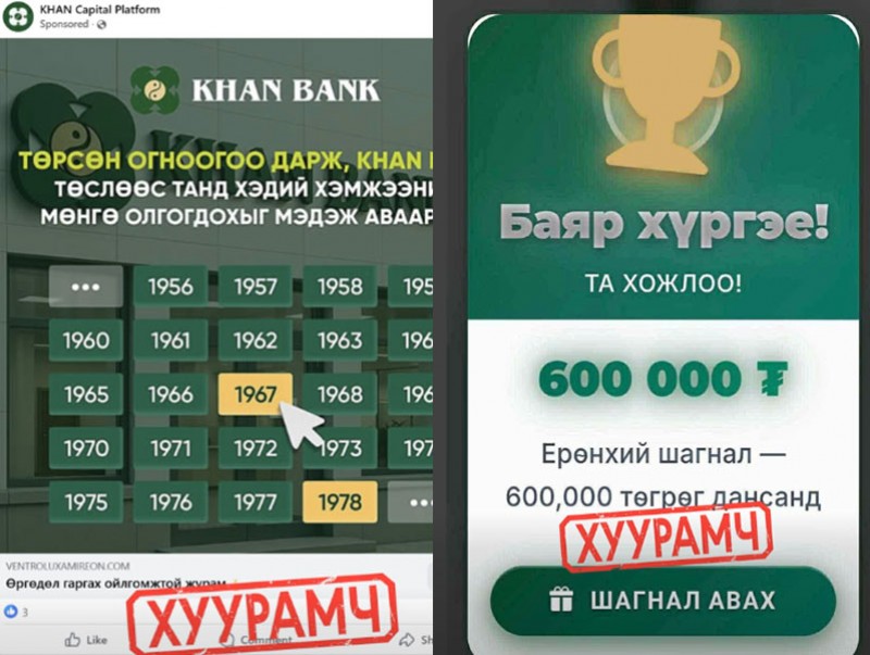 | "Урамшуулал", "Сугалаа", "Мөнгө хожлоо" гэсэн цахим залилангийн хэрэг нэмэгдсээр байна | ||