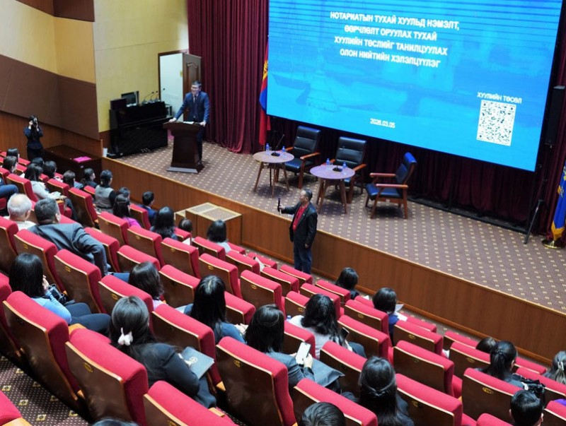 | Нотариатын тухай хуульд нэмэлт, өөрчлөлт оруулах тухай хуулийн төслийг танилцуулах хэлэлцүүлэг боллоо | ||