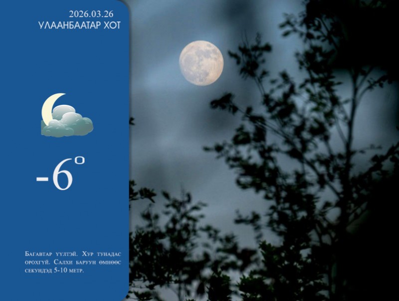 | ЦАГ АГААР: Улаанбаатарт шөнөдөө 6 хэм хүйтэн | ||