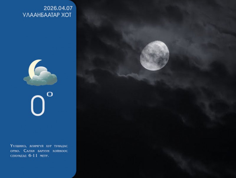 | ЦАГ АГААР: Улаанбаатарт шөнөдөө 0 хэм орчим байна | ||