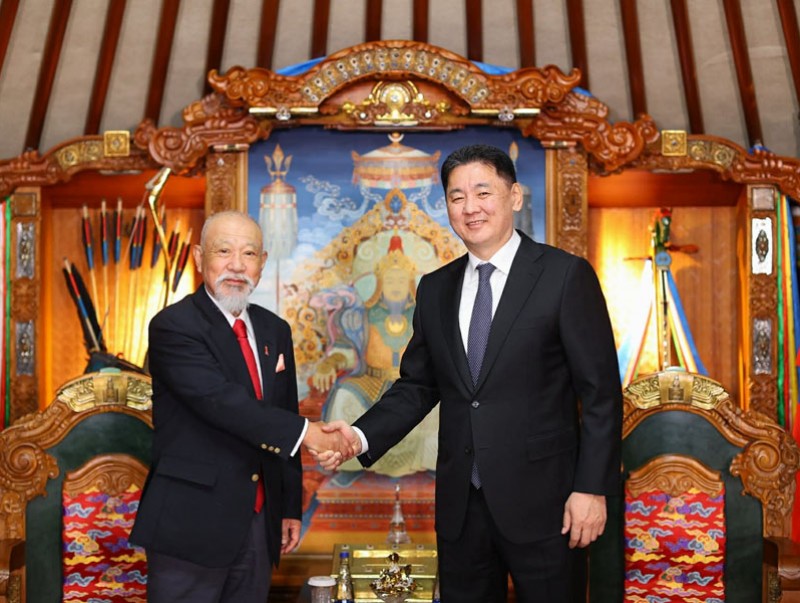 Монгол Улсын Ерөнхийлөгч Ухнаагийн Хүрэлсүх Японы “Ниппон сан”-гийн хүндэт тэргүүн Сасакава Ёохэи-г хүлээн авч уулзлаа. “Ниппон сан”-гийн боловсрол, хүний нөөц, уламжлалт анагаах ухаан, эрдэм шинжилгээний салбарт хэрэгжүүлсэн төсөл, хөтөлбөрүүд нийгэм, эдийн засгийн тогтвортой, хүртээмжтэй хөгжилд чухал түлхэц болсонд Ерөнхийлөгч талархал илэрхийллээ.