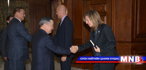 Монгол Улсын Их Хурлын дарга З.Энхболд өнөөдөр /2014.10.08/ Бүгд Найрамдахчуудын Олон Улсын Хүрээлэнгийн хөтөлбөр хариуцсан дэд ерөнхийлөгч Томас И.Гаррет тэргүүтэй төлөөлөгчдийг хүлээн авч уулзав.