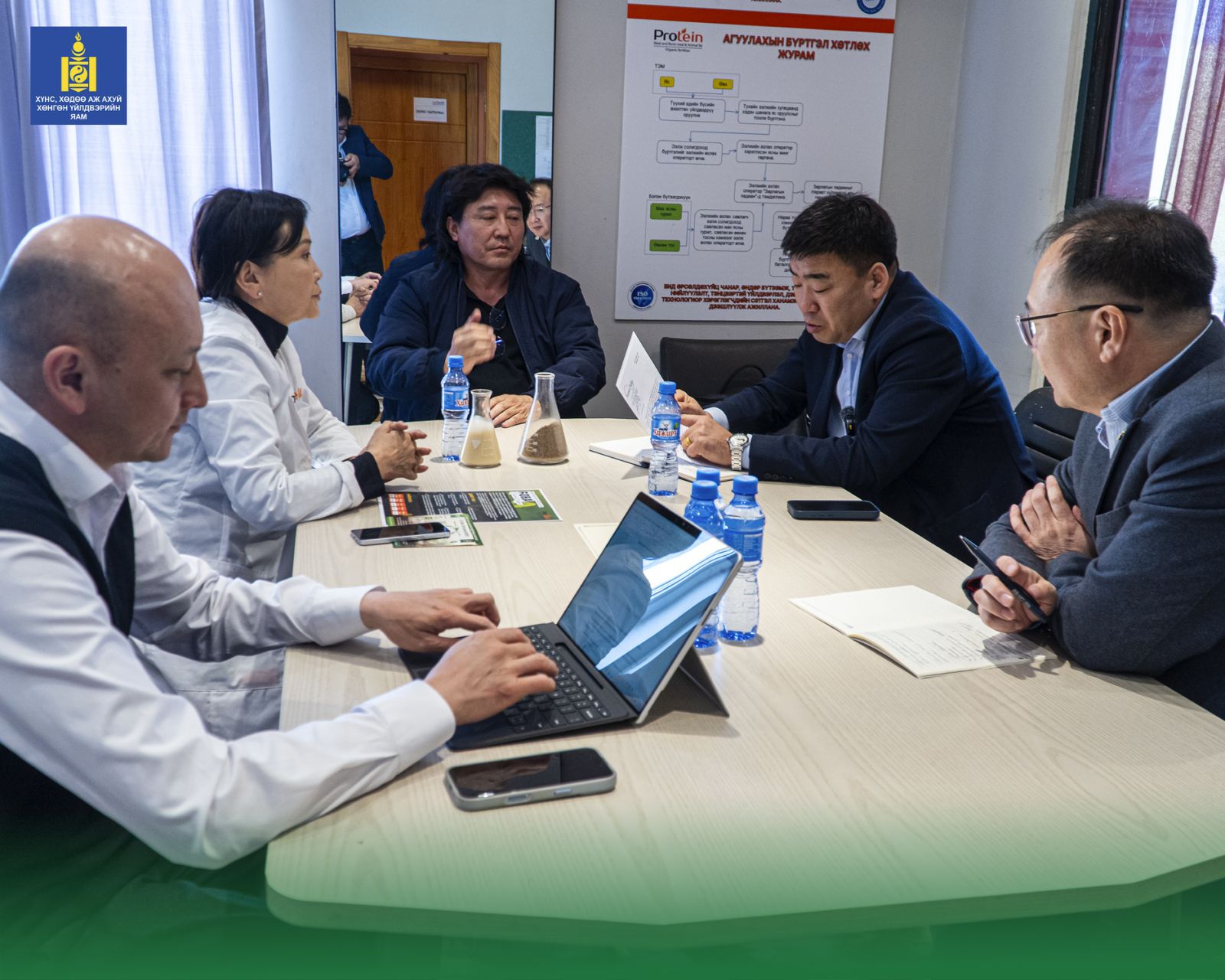 Эднийх ашиглагдалгүй хаягдаж буй малын яс, дайвар бүтээгдэхүүнийг орчин үеийн технологиор боловсруулж, байгальд ээлтэй, органик бордоо, мал, амьтны тэжээл үйлдвэрлэдэг. Тус үйлдвэрийн бордоог газар тариалан, төмс, хүнсний ногоо, мод үржүүлгийн салбарт өргөн хэрэглэж байгаа аж. Хоногт 30-50 тонн малын хаягдал яс, махыг боловсруулж, 30-35 тонн бордоо, тэжээл үйлдвэрлэдэг байна. “Protein Mongolia” үйлдвэр мөн малын яснаас тос гаргаж, 2023 оноос БНСУ-д экспортолж эхэлжээ. Уг тосоор солонгосууд онгоцны түлш үйлдвэрлэдэг гэнэ. Одоогоор 3000 тонн ясны тос БНСУ руу экспортлоод байгаа тухайгаа “Protein Mongolia” үйлдвэрийн захирал Н.Оюунбат ХХААХҮ-ийн сайд Ц.Идэрбатад танилцуулав. Сайдын хувьд малын гаралтай түүхий эд, тэр тусмаа арьс, шир, дайвар, яс зэргийг ашиглалгүй хаях бус үнэ цэнтэй бүтээгдэхүүн болгох ёстой гэж үзэж, энэ чиглэлээр үйл ажиллагаа явуулдаг үндэсний үйлдвэрлэгч аж ахуйн нэгжүүдийн үйл ажиллагаатай газар дээр нь танилцах зорилгоор эдний үйлдвэрийн талаар олон нийтийн сүлжээнээс мэдээлэл авч, удирдлагуудтай нь холбоо барьснаар зорьж ирсэн нь энэ юм.