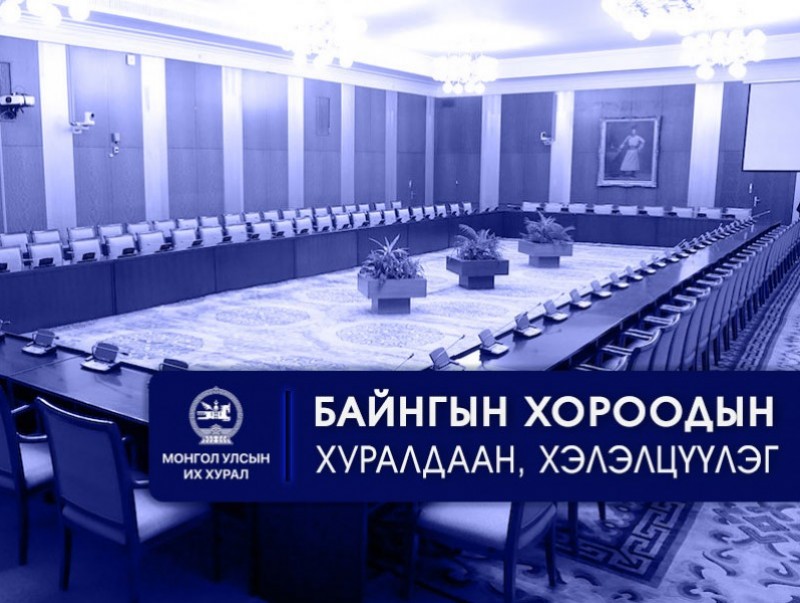 · Улсын Их Хурлын 2026 оны хаврын ээлжит чуулганаар хэлэлцэх асуудлын жагсаалтад ороогүй хууль, тогтоолын төслүүдийг чуулганаар хэлэлцүүлэх эсэх асуудал · Монгол Улсын Их Хурлын чуулганы хуралдааны дэгийн тухай хуульд нэмэлт, өөрчлөлт оруулах тухай хуулийн төсөл /Үндсэн хуулийн цэцийн 2025 оны 12 дугаар дүгнэлтийг хүлээн зөвшөөрсөнтэй холбогдуулан боловсруулсан, анхны хэлэлцүүлэг/ · Байнгын хорооны тогтоолын төсөл /Ажлын хэсэг байгуулах тухай/ · Бусад |