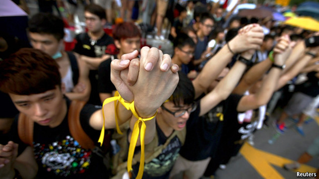 Хонгконгийн шүхэртэй хувьсгал үргэлжилж байна. Тэдэнд Хятадын Тусгай захиргааны бүсийн эрх баригчид жагсаалаа энэ сарын 6-нд дуусгах үүрэг өгсөн ч эсэргүүцлээ илэрхийлж буй 100 мянган жагсагч “Зорилгодоо хүрэхээс нааш гэртээ харихгүй” гэж мэдэгджээ.Хонгконгийн нийтийг хамарсан энэхүү эсэргүүцлийн хөдөлгөөнийг 1989 оноос хойш Хятадын Коммунист намд тохиолдсон хамгийн том сорилт гэж болно. 25 жилийн өмнө Бээжингийн Тянь Ань Миний талбайд эсэргүүцэн жагссан олон мянган оюутнууд шиг оюутан залуус Шүхрийн хувьсгалыг хийж байгаа билээ.