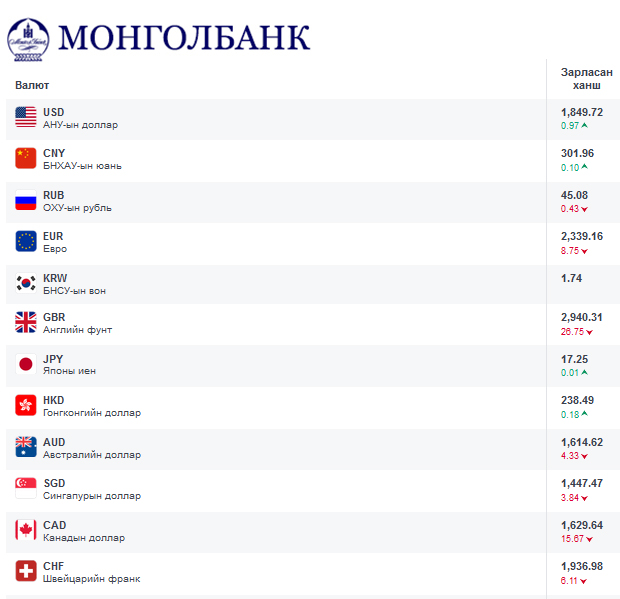 Өнөөдрийн байдлаар валютын ханш Монголбанк, арилжааны банкууд болон валютын захууд дээр ямар байгааг хүргэе.