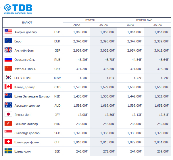 | Өнөөдрийн валютын ханш /2014.10.21/ | ||